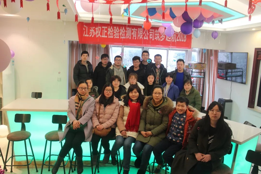 舊歲已展千重錦,新年更進(jìn)百尺桿。2月24日是江蘇權(quán)正檢驗(yàn)檢測(cè)公司全體員工的團(tuán)建日,此次團(tuán)建,加強(qiáng)了同事之間的溝通和交流、增進(jìn)了各部門相互配合的默契,增強(qiáng)了團(tuán)隊(duì)凝聚力,大家同心聚力,共同沖刺2018的奮斗目標(biāo)。
